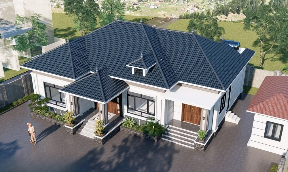 Phối cảnh 3D mẫu nhà vườn mái Nhật